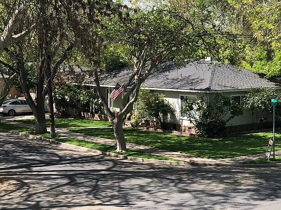 Desirable home in Merced’s first honorary historic district. Mature tree lined streets surround this neighborhood. Originally built for a member of the Ragsdale family, this home features original wood floors throughout. Recently remodeled and updated to include designer windows and French doors leading out to a fully landscaped garden. Recent remodels include a newly built 120 bottle wine room, custom-designed travertine wood burning fireplace and mantle, designer halogen gallery lighting throughout the home, and much more. The open concept of the living areas allows for convenient indoor/outdoor entertaining. Entire back yard is designed for entertaining and can accommodate seating for 40+ on the patio. Mature trees and landscape in the back allow for complete shade throughout. Situated on a corner, this home allows unobstructed views of the neighborhood and Bear Creek.