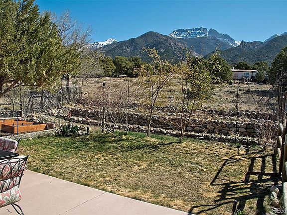 With its secluded location & stunning landscape, this mountain retreat has it all: lawns, gardens, fruit trees, raised beds, rock terraces, fencing, attached/detached greenhouses, studio, garage, screen porch & more, all on 2+ acres in the beautiful Baca Grande. Excellent opportunity for green thumbs! Truly phenomenal gardens w/ mature apple & apricot trees, nanking cherry bushes. Crestone is an Int’l Dark Skies Community famous for 14,000-ft peaks, w/ 2 local schools, natural/organic/local meat & produce grocers, & burgeoning community. 1148sf 2BD/2BA rancher has natural light & in-floor radiant heat. Gated courtyard w/ covered porch, perfect for shady afternoons & sunset viewing. The front entrance opens onto a hall between the living & sleeping spaces. The great room has long San Luis Valley views & corner wood stove w/ tile hearth for cozy winter evenings. The attached greenhouse & screen porch are off south side, the latter ideal for breezy indoor comfort. The dining area has direct mountain views & opens onto east garden/terrace via oversized French doors, providing easy sunrise/morning enjoyment or al fresco dining/entertainment. The galley kitchen features luxurious porcelain tile counters, wood cabinets & dbl cast-iron sink w/ a view. Off kitchen is laundry/utility room w/ shelf storage, side door to terrace. Full guest bathroom off front hall, w/ tile bath/shower & pedestal sink. Primary bedroom w/ east garden views, spacious closet & stained-glass window. Primary full bathroom also features tile shower/bath & pedestal sink. Spacious guest bedroom w/ stained-glass window & west garden view. Bedrooms are carpeted, living space has durable ceramic tile. LP boiler & hot water heater. Low maintenance metal roof & stucco exterior. Extra lot can be consolidated to reduce HOA dues. Rare oasis in the pinon-juniper woodlands of the beautiful Baca Grande, which features hydrants, staffed firehouse/EMTs, rustic golf/tennis, trails - call today to schedule your tour!