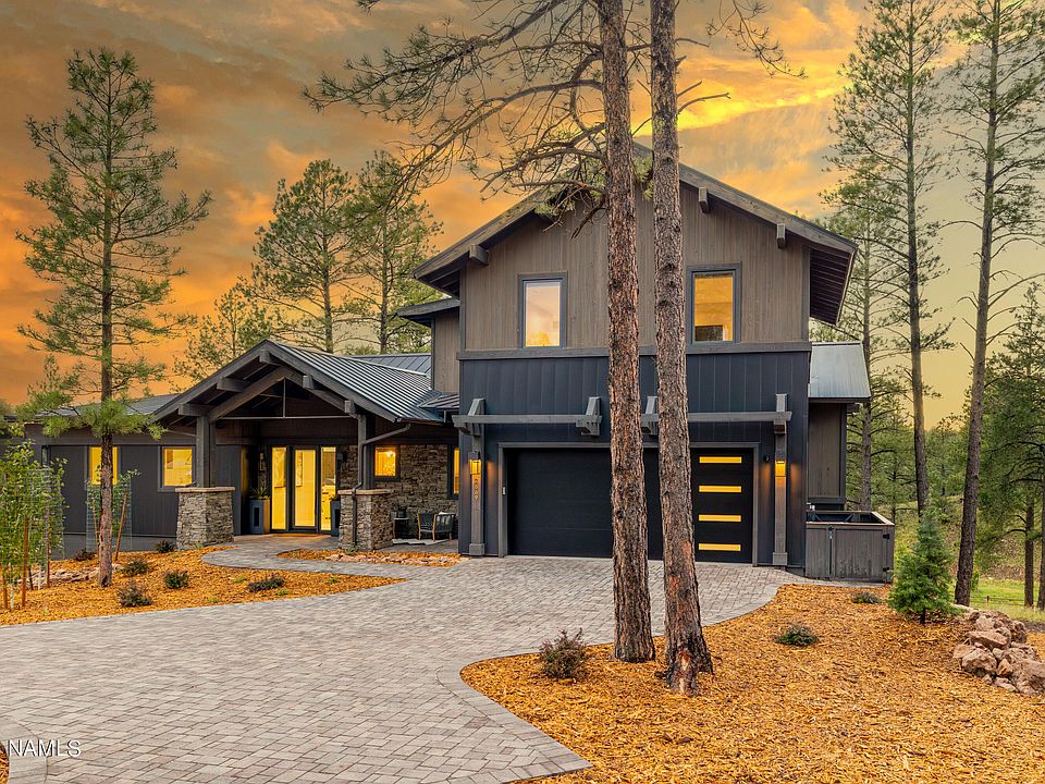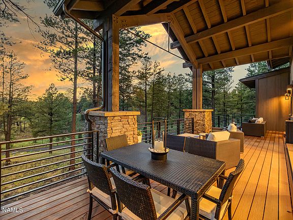 Welcome to your dream home in the prestigious Coconino Ridge of Pine Canyon Golf Community in Flagstaff, AZ. This luxurious brand new home offers an unparalleled combination of modern amenities and natural beauty, making it a true haven for those seeking the finest in upscale living. Nestled on a premium cul-de-sac lot, this residence boasts a protected treed view that enhances your privacy and connection to the surrounding landscape. As you step inside, you'll be greeted by the grandeur of the spacious great room featuring a stunning tongue and groove beamed ceiling, creating an atmosphere of warmth and elegance. Entertainment is taken to new heights in the large bonus room, complete with a 75'' television, perfect for hosting movie nights or the ultimate kid's retreat. With four additional televisions strategically placed throughout the home, you'll never miss a moment of excitement. The included EERO wifi system ensures seamless connectivity for all your smart devices.The allure of this home extends beyond its technological conveniences. Gorgeous wood floors flow throughout, providing a timeless and cohesive aesthetic. Step outside to discover the extended deck and patio areas, thoughtfully designed for outdoor gatherings. The built-in barbecue adds a culinary dimension to your entertainment options, allowing you to savor the Flagstaff weather while enjoying delicious grilled meals.Indulge in the master suite's luxurious features, including a heated toilet seats in both the master and powder room. Hunter Douglas shades adorn all windows, with many featuring remote controls for effortless light and privacy management. Custom closets, storage areas, and garage cabinets ensure that you'll always have ample space to organize your belongings.Efficiency and innovation define this home's infrastructure. A tankless water heater ensures a continuous supply of hot water, while the FloLogic leak detection and remote water shutoff system provide peace of mind and protection against potential water damage.The gourmet kitchen boasts Subzero/Wolf appliances, catering to the culinary enthusiast in you. An array of contemporary chandeliers and lighting fixtures throughout the home add an artistic touch to the already captivating ambiance.Additional amenities include a fireplace in the great room, a metal roof for durability, and the convenience of a new Electrolux washer and dryer.For your four-legged family members, an enclosed dog area and dog door are thoughtfully included.Immerse yourself in the luxury, sophistication, and comfort that this exquisite Pine Canyon home offers. Experience the epitome of Flagstaff living in a community renowned for its world-class amenities, including golf, fitness facilities, and social events. Don't miss your opportunity to call this masterpiece your own. Schedule a showing today and prepare to embark on a new chapter of elevated living.