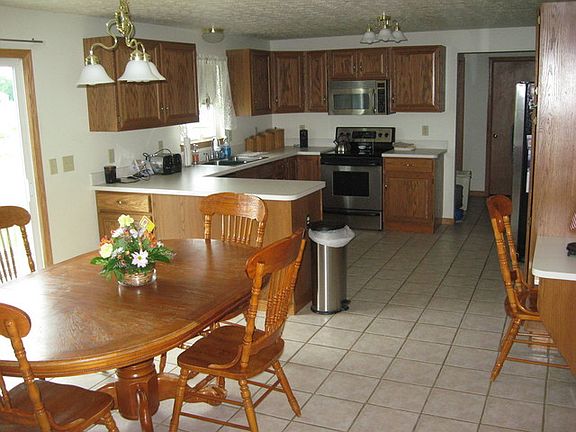 In-law suite above the garage. Hardwood floors throughout, french doors. Basement is finished with a kitchen, tiled family room, walk-in closet, ultility room, and 2 other rooms. Guardian back-up generator, electric heat pump, lifetime warranty on hot water tank. Fenced area in back. Outbuilding is 30' x 40' with 100 amp electrical service. In front--3/4 acre 16' deep pond stocked with fish.