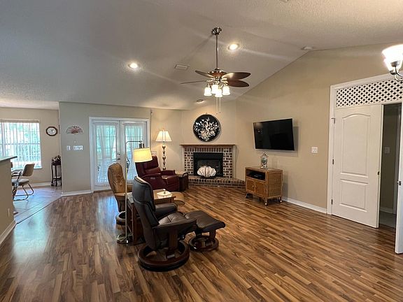 Meticulous home on a beautiful, private oversized 1.5 lot with privacy of the wilderness area on one side & green space in the back. Gorgeous 3/2 home with an open floor plan and a spacious living room with a fireplace. The kitchen has bar seating and a dining area with wonderful natural light where you can take in the beauty of the private backyard. This home is ideal for entertaining family and friends in the Sunroom or deck that also overlooks the beautiful backyard. Notable features include: New Fortified Roof 2020 and New HVAC 2020 with transferable warranties, Storm Shutters, New Water heater 2019, and Complete home surge protector. This property is in the highly desired, safe, friendly, beach neighborhood of Spanish Cove on the shores of Perdido Bay, just 5 minutes from the Lillian boat launch and only 15 minutes from the sugar white beaches of the Gulf of Mexico. There is something for everyone in this exclusive coastal golf cart community that sits on the Alabama/Florida line. Owners enjoy membership with a lifestyle full of amenities and low POA Dues of only $74/Mo including trash pick-up, 24 hours security and key FOB entry into facilities, two clubhouses, a year-round junior Olympic sized swimming pool that is heated and covered in the winter months. The many offered activities include: aquatic classes, pickleball/tennis courts, basketball court, fitness facility, playground, shuffleboard, and nature hiking trails. You can join the community-organized activities like Bingo, card games, live bands, book clubs, garden club, and group travel opportunities. If you like to relax, you can spend the day at the Spanish Cove beach, fish from the 500-ft pier, or watch the sunset while taking a stroll around this lovely community in your golf cart. Spanish Cove and Lillian are conveniently located near the Pensacola NAS facilities, VA Hospital. Come see your new home.