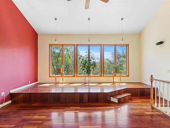 Unique at every turn! This incredible home was completely rebuilt & redesigned in 2004 to take full advantage of the hillside setting. Enter the home and head upstairs to this huge bedroom that features stunning Brazilian Cherry floors, vaulted ceilings, automated skylights, two large closets, and stunning treetop views. Back down a floor you will find an office/sitting area off the entryway, a gorgeous full bath, and 2nd bedroom. Down another level is the open kitchen, dining, & living area, that features a modern kitchen with Brookhaven cabinetry, tin ceilings, laundry area, gas Franklin stove, more incredible views, and a balcony for dining or relaxing! Down to the bottom level is a finished walkout basement that lends itself to be a great teen "apartment" with full bath. Other features include; Marvin windows, Rinnai tankless hot water, Leaf Guard brand gutter guards (lifetime warranty), new furnace in 2016, and Greenlight is available. But there's more! Outside, you can spend time on the multi-level deck, large yard, or in the 2nd lot! A second lot comes with the property! (4 Viroqua Dr. 53'x142') Showings start 5/13 at 9am, and delayed negotiations on 5/17 at noon.