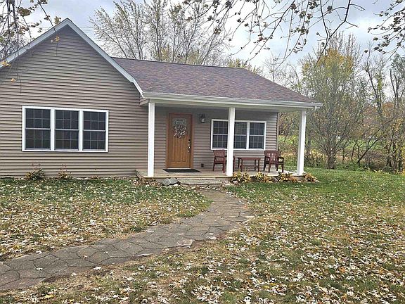 Charming 3 bedroom home sits on 3 beautiful acres at the edge of town. 26x14 Covered patio is accessible from Primary bedroom and is perfect for relaxing and swinging on the two swings. Open kitchen/dining is spacious and new lighting makes for a nice dining area. Living room and dining have nice new updated windows for gorgeous country views, Primary bedroom has two closets and area for a dresser or vanity and has gorgeous hardwood floors. The nice basement has a darling kids nook for playing and large laundry area for folding and storage. 2 car detached garage and a 60x18 metal shed and other smaller shed in the Large fenced in area. The front tree boast a wonderful tree house with electricity for the kids! You will not want to miss this country setting with nearby city conveniences!