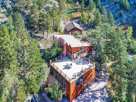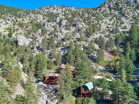 Iconic property on the front range in Coal Creek Canyon, unique in every way! 68 acres of hillsides & rock formations with a private gated driveway leading to a large well-built home. Floorplan is unique but amazingly functional. Stunning views from 4 decks, totally private & situated next to a stream with waterfalls. Very close in & minutes from Boulder, Arvada & Golden. Multiple storage buildings, an oversized garage & new septic system. Don't think this is average, this is different & unique!