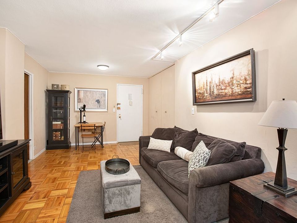 Enjoy pin-drop quiet, amazing storage and thoughtful updates in this junior one-bedroom, one-bathroom home in Gramercy's well known Quaker Ridge co-op. With their spacious layouts, Quaker Ridge G-line alcove studios are ripe for conversion to one-bedroom homes. With this fantastic, renovated unit, the well-executed conversion has already been done for you, along with convenient updates throughout. The expansive living room greets you with a generous layout that includes plenty of space for both living and dining. The adjacent renovated kitchen features Shaker style wood cabinets topped in granite alongside full-size appliances. The large bedroom can easily accommodate a queen-size bed and dresser, while the en suite bathroom has been updated. A total of four roomy closets are found throughout this home, each outfitted with a brand-new, high-end California closet system, and the new HVAC unit ensures year-round comfort in this fantastic home. Quaker Ridge is a revered postwar co-op known for its stellar financials and low maintenance. Residents enjoy full-time doorman service and live-in superintendent, modern laundry facilities, bike storage and a residents-only parking garage with direct access to the building. Quaker Ridge allows co-purchasing and pets, but does not permit guarantors or pieds-à-terre. The monthly energy charge of $83 already included in the maintenance fluctuates quarterly. Set in the heart of Gramercy -- with immediate access to the Flatiron District, NoMad, Union Square and the East Village -- fantastic shopping, dining and nightlife are all within easy reach. Enjoy German food and world-famous Christmas decorations at Rolf's or feast on Italian favorites at historic Pete's Tavern. Gramercy Park, Union Square and Madison Square Park offer outdoor space, phenomenal greenmarkets and year-round events, and transportation is superb with 4/5/6, N/Q/R/W and L trains all nearby.