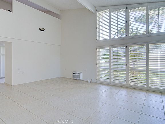 Upgraded expanded Seville floorplan in the Laguna Woods senior community. This residence is located far from busy roads and noisy highways in a large cul-de-sac with ample guest parking. The front patio has been fully enclosed creating total living space of nearly 1500 sq. ft. This multi-purpose bonus room could serve as an arts and crafts studio, sewing room, home gym, office or any number of other uses. The many windows in the large living room keep this area light and bright all day long. The large upstairs master bedroom suite features a bathroom with granite countertops and an updated shower with stone walls. There is ample cabinet storage throughout this home as well as attic storage. Additional features include dual pane windows, ceiling fans, tile flooring and a stackable washer-dryer downstairs. The nearby assigned carport has both upper and lower storage cabinets. Do not miss this fine home!