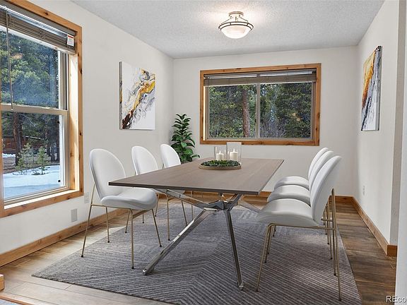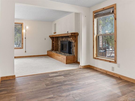 This 3 bed 3 bath, with flex room mountain home is surrounded by peaceful woods. The tri-level home has updates galore and is well maintained. Walk into a spacious living room with a gas fireplace and open main floor living. The kitchen features newer stainless steel appliances, formal dining room and in floor hot water radiant heat. Off the eating area and kitchen are sliding glass doors that connect you to a deck and private back patio, where you can enjoy a cool evening. This is a perfect spot for entertaining. The upper level includes 3 bedrooms, full bath and a master bed with updated private master bathroom and walk in closet. The upper level is heated with electric ceiling radiant heat. The lower level gives this home even more room. The living and family room boast an electric stove for those cold winters and a brand new bathroom. The garage was updated to include an office (flex room), a water broiler was installed, new paint and carpet and new front storm door are a few other upgrades made. The home is on over an acre making it a perfect place to get away and enjoy some time off while also providing top notch amenities to make it feel like home. Do not miss out on this move-in ready opportunity. This is a beautiful well appointed home in the wonderful town of Leadville in the Rockies, come take a look at this spectacular alpine home in arguably one of Leadvilles most sought after communities!