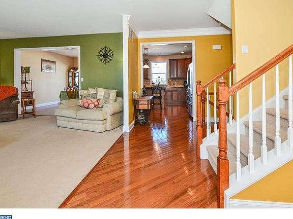 Immaculate 4 bedroom home 10 minutes from Historic Doylestown. Enter the 5 year young home in the open foyer with hardwood floors that runs through the kitchen and breakfast room. 9' ceilings on the first floor and in basement. Propane fireplace in living room. Kitchen offers 42" oak cabinets, granite countertops, tile backsplash, and recessed lighting. Open sliders off of the dining room to the maintenance free composite deck PLUS EP Henry Patio, and fenced in yard. Laundry room and powder room finish off this level. The second floor offers a spacious master bedroom with a ceiling fan, and walk-in closets. Master bath provides a soaking tub, shower stall, 6x6 ceramic tiling, and double sinks. Two large bedrooms each with walk-in closets, and a ceramic tiled hall bath complete the 2nd floor. 3rd story loft can be 4th bedroom, an office, or a play area. Finished basement with plenty of space for an office and extra family room. The homes also features 5" baseboards throughout, 2 piece crown molding, 2 zone HVAC, and battery back-up. Community features miles of walking trails, acres of open space, playgrounds, and tennis & basketball courts. Association fee also covers all your grass cutting both front and backyard and grass fertilization twice a year. 02/09/15
