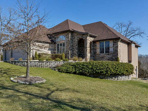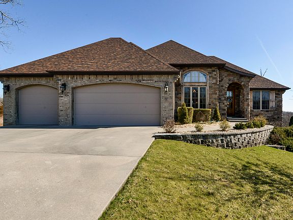 Let the Good Life begin! Start you day sipping coffee and looking out over the beautiful Ozark Mountains from the deck of this beautiful ranch-style home with a walkout basement. The open layout upon entry draws you to the cozy fireplace and spectacular views. This home features hardwood flooring, crown molding, large windows for natural light, formal and casual dining, an oversized 3 car garage and two freshly painted decks. Enjoy your quiet time in the Master Bedroom with plenty of room to have a seating area and windows with a view. Master bathroom has a double vanity, jacuzzi tub and walk in shower, and a large walk in closet. The main level offers a secondary bedroom, full bath and office. The spacious Bonus Room on the lower level is perfect for gathering and recreational activities. There is room for a pool table and more. The lower level also offers two very large bedrooms, full bath and even a kid's pickleball court! The unfinished area is great for storage or you can add addition rooms, if needed. The home has been very well cared for. It's the perfect place to enjoy the lifestyle of the master-planned community of StoneBridge Village. POA dues only $150 monthly and includes Gated Entrance, Tennis Courts, Pools, Fitness Center and the Legendary Golf Course (offered at discounted fees), AND the Clubhouse and social activities. Come See!. Seller prefers 48 hours notice to show and Possession must be after April 15.