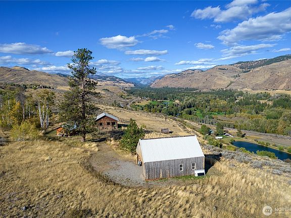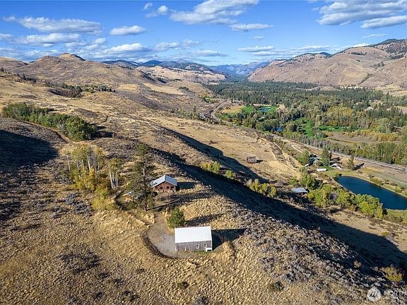 Escape to your own private oasis on this breathtaking 43-acre property, featuring lush aspen groves, majestic pines, and unsurpassed views of the Chewuch River Valley and Pearrygin Lake. Just 3 miles from Winthrop, this haven includes a fully remodeled 768 sq ft studio cabin with a modern kitchen, full bath, and large windows capturing panoramic vistas. A charming 252 sq ft guest cabin with a 3/4 bath offers extra space for visitors. The newly built 864 sq ft shop/barn provides ample storage. Enjoy the seasonal pond on the 2nd tax parcel. With two tax parcels, you can build your dream home, create a compound, or sell a 23+ acre lot. Excellent 30 GPM well.