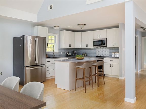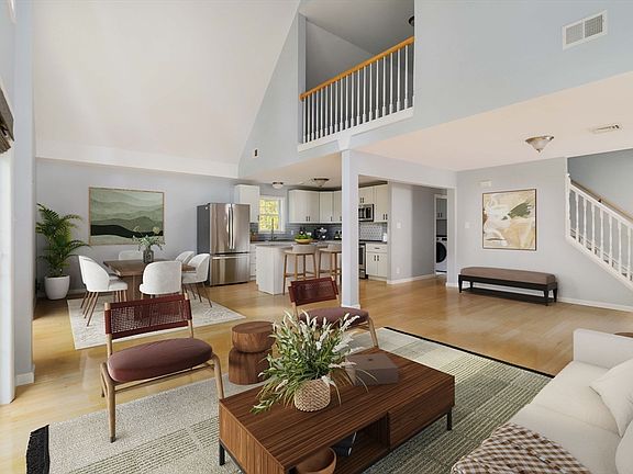 This is your ideal first home or effortless downsizing haven! Built in 2010, this move-in-ready gem eliminates the stress of renovations and is perfect for those craving simplicity without sacrificing style. An airy, open floor plan with gleaming wood floors is highlighted by the dramatic vaulted living room, with a soaring cathedral ceiling and a striking wall of windows framing tranquil views of the surrounding nature. Two spacious bedrooms on the first floor offer single-level living, while the upstairs offers a third bedroom plus a flex loft, perfect for remote work or guests. Outside, 1.5 acres of lush land abut conservation, creating your personal suburban sanctuary. A fully fenced yard invites safe play for little ones and pets, gardening, or evenings under the stars. Bedford schools, charming town center, shopping centers, and major commuter routes are just minutes away. This blend of 2010-built quality, move-in perfection, and natural privacy is rarely seen at this price.
