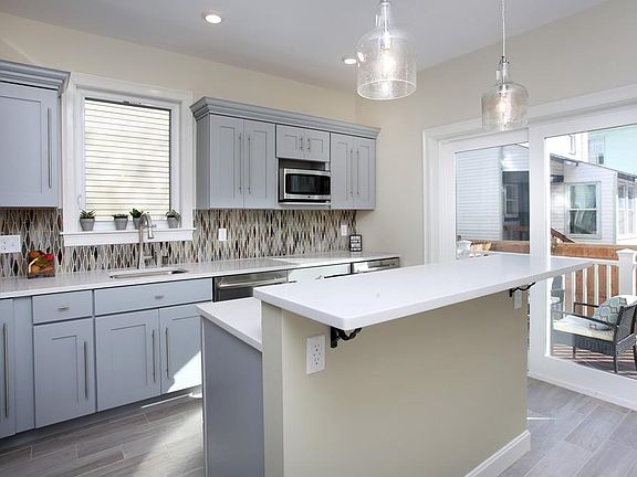 Luxurious brand new renovation of a classic 3 decker featuring gorgeous, custom kitchen with Jenn-Air appliance package including convection range with built-in down draft exhaust, French door cabinet-depth fridge with ice-maker and filtered water dispenser, dishwasher, and wine cooler. Solid wood cabinetry with many built-in features, breakfast bar, tiled backsplash, and slider with direct access to private deck and shared yard. Master bedroom with en suite bath and 2 additional bedrooms. Beautifully tiled baths with rain head showers and seamless glass doors. Large open living/dining area with gas fireplace, bay window, new hardwoods, and high ceilings throughout. Brand new forced hot air heating and central air, in-unit laundry hookups, and full walk-out basement with exclusive storage round out this spectacular home. Super convenient location with close proximity to 2 Red Line stops, bustling Field's Corner commercial district, and close to rapidly developing Peabody Square.
