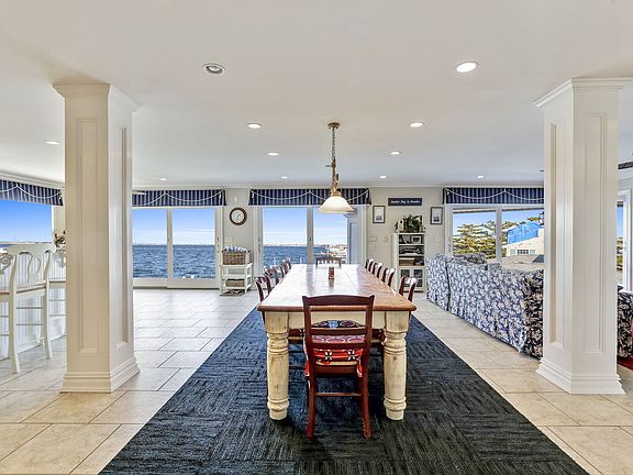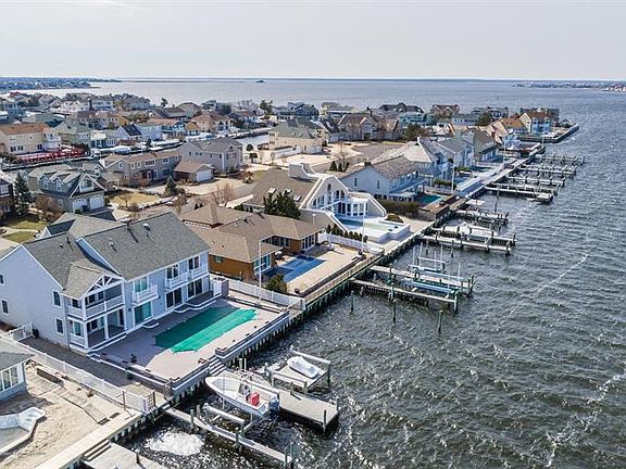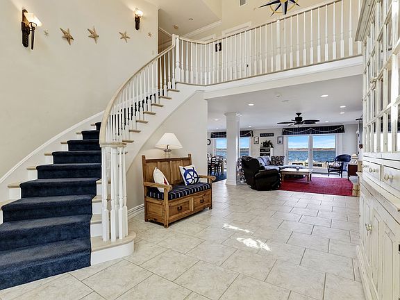 Breathtaking BAY FRONT views from nearly every room of this magnificent Seashore colonial located in the waterfront community of Curtis Point. Open floor plan with family room, dining and kitchen area. Two sided fireplace warms the family room, game room and living room. Gourmet kitchen with 6 burner stove, wine fridge, stainless steel sink, granite counter tops and an over sized island.This 2006 custom home impresses from the first step into the two story foyer with a grand staircase to the second floor with 6 over sized bedrooms, 3 full baths, a huge central sitting room and 2nd laundry station. Balconies on four bedrooms overlook two 50 ft trex docks, boat lift, jet ski dock, and pool.