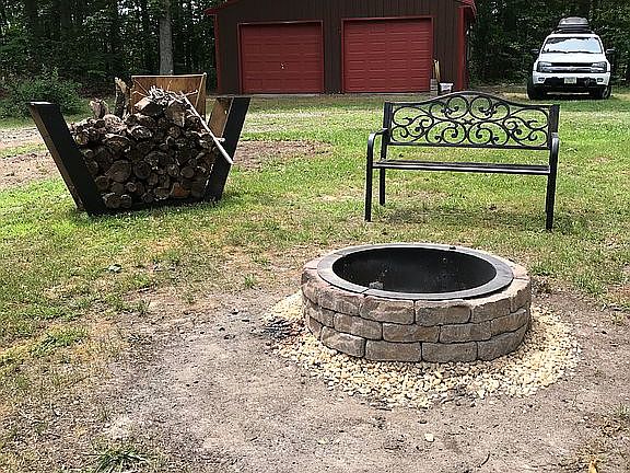 Renovated Log Home with 4 ACRES of land, and an awesome 2-car detached two bay garage! This is the perfect get-away retreat for someone looking to enjoy the outdoors. Awesome Kitchen with Granite countertop, stainless steel appliances, tile back splash, under cabinet lighting, recessed lights, ceiling fan, which is open to the living room with raised BRICK fireplace with mantle, and ceiling fan. Custom door frame molding. Huge walk in laundry room with shelving above, with it's own entrance so it can also be used as a mudroom. Primary bedroom with double cedar closet, ceiling fan, and newer carpet. Bedroom #2 with ceiling fan, natural pine, double cedar closet and newer carpet. Pull down attic for additional storage. Full bathroom offers tile floor, tub surround, updated lighting fixtures, and double bowl vanity sinks! Mega size rear porch that is partly covered, and partly open that looks out on to natural scenery. Newer heat pump, newer water heater and gas Generac whole house GENERATOR. Circular gravel driveway. Outbuilding for additional storage. Garage is on concrete slab, has built-in work bench, with tin roof and has electricity.