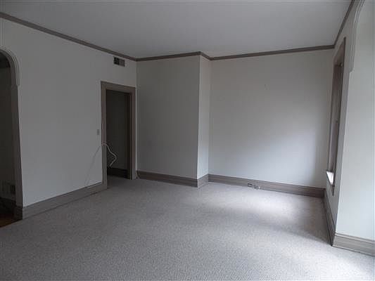 Large living room and family room, wall-to-wall carpet, faux fireplace. Dining room. Hardwood floors in bedrooms, large closet. Modern bathroom. Beautiful stained glass windows in kitchen.