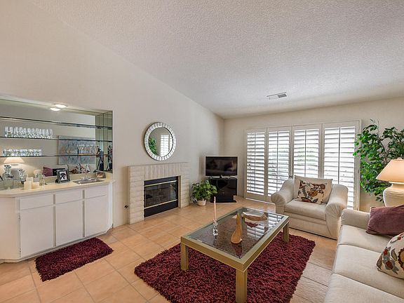 The seller, who is the original owner, lived here for 28 years. No one lives above this spotless-clean home that was fastidiously maintained all those years and is now totally move-in ready. The walls, tile and carpet are all in great condition. This single level attached condominium is a quiet end unit with an expansive corner side yard that creates beautiful drive-up street appeal. There is a community swimming pool and spa close-by. The home features two bedrooms, two baths, a great room, a formal dining area, a nook in the kitchen and a separate inside laundry room. There is an attached two car garage. The great room has vaulted ceilings, a spectacular wet bar, a cozy fireplace and a glass slider access to the covered patio area. The master suite has two walk-in closets, both with mirrored sliding doors, a private bath and patio access. The kitchen looks over the formal dining area toward the great room, patio and beyond.