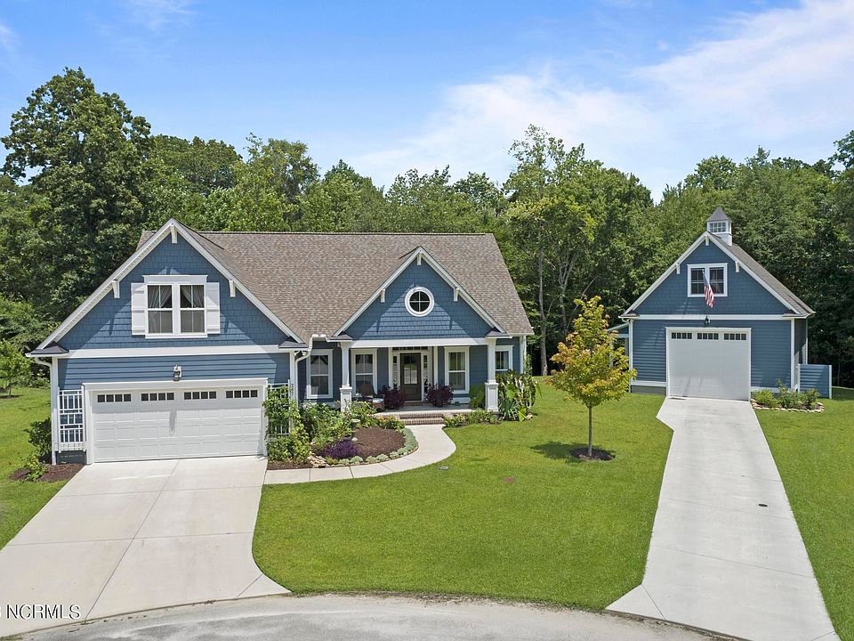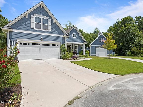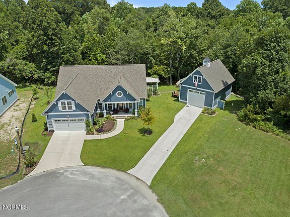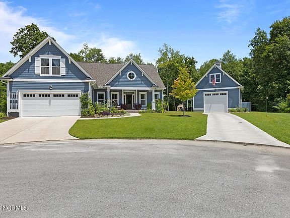 Just outside the four seasons room, is a beautiful patio beneath a custom pergola, rated for hurricane winds. Just across the grass, is the custom built, wood-fired oven & an additional covered patio. For the man who needs more than a 2-car garage, welcome to your 24' X 32' oversized garage and the ultimate man cave featuring a live edge bar, half bath, & an unfinished upstairs space currently being used as storage. The upstairs storage space offers existing plumbing and electrical, perfect for a future apartment or in-laws suite. A few of the home's upgrades include; wainscoting, crown molding, coffered ceilings, custom lighting, custom french drains, underground gutters and wood floors throughout. You do not want to miss this opportunity to live in Summerhouse, Onslow County's only luxury waterfront community!