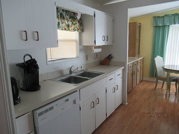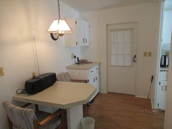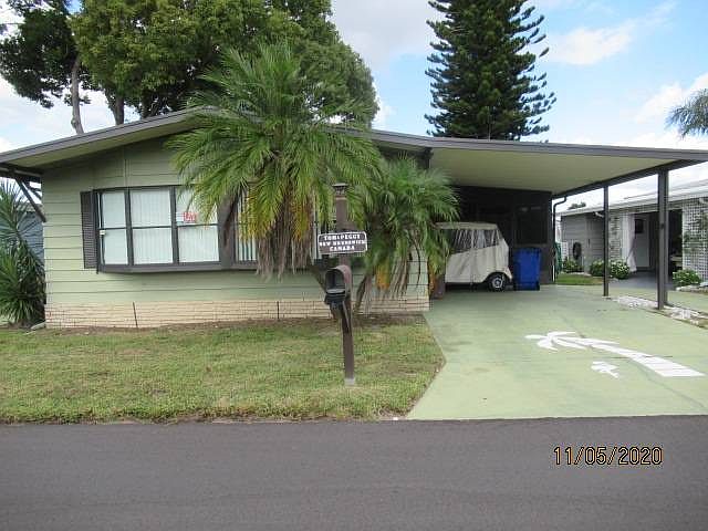 This home has an enclosed lanai in the front of the home to relax and enjoy your morning coffee or to entertain friends. A very nice home with laminate flooring throughout. The home has a galley kitchen with a breakfast area, a large dining room open to the living room, two spacious bedrooms and updated bathrooms. There is a shed with a laundry room and ample storage. Golf cart included. This home is located in a very nicely kept community with lots of activities including tennis, billiards, horseshoes, cards, dances, church services, 18 hole executive, private golf course, bingo, fishing right from the dock in 900+ acre Lake Henry and much, much more. Free year of golf included.
