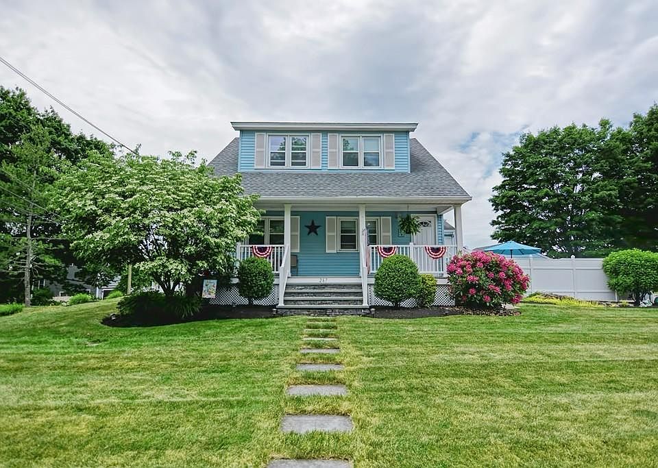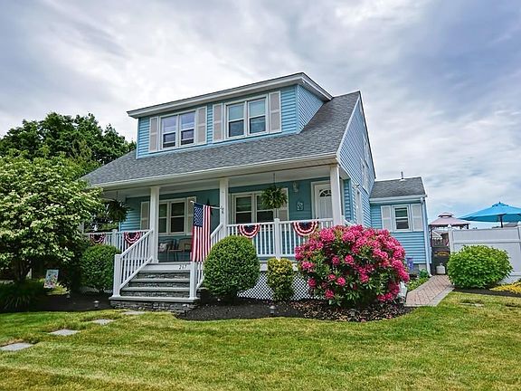 This is a rare to come by two family house. The tranquility of its light blue color gives this home such a calm and peaceful feel. Enjoy relaxing on the farmers porch or entertaining in the backyard on the paver patio area. The first floor has the feel of having a balcony by opening the slider doors off the living room, which also allows for extra light and air to enter the space. The perk of having a high efficiency Navien Gas Combo Boiler heating water only when needed, makes it environmentally sound and cost efficient.There are updated windows throughout. A newer architectural shingle roof, aluminum vinyl siding, The yard has a sprinkler system and has been beautifully landscaped. It includes a 2 car garage and allows for 6 off-street parking. The first floor has an updated bathroom, granite kitchen counters, stainless steel appliances and illusion of an open floor plan. The second floor unit has all brand new flooring, updated bathroom and has been freshly painted. Both units of