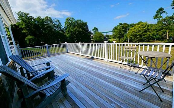 Classic Shingle Style Townhouse featuring sunset views of Mt Hope Bay illuminated by the Mt Hope Bridge. Open floor plan,fireplace,2 bedrooms ,2.5 baths,sunroom,chefs eat in kitchen,den, balcony,covered porch and deck. Full basement with walk out.