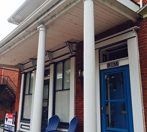 What an awesome yesteryear find!! This brick two story boasts an impressive foyer with an open stairway, deep window sills, french doors, hardwood flooring, lots of pretty natural woodwork, and a first floor laundry/storage room addition. Mix that with tasteful updates, and you have this great 3 bedroom home to call your very own! Nice front porch, privacy-fenced rear patio getaway, 17' x 24' outbuilding with loft workshop, off street parking, and 2014 new roof. 5 a/c units included. In Historic/Commercial Business District. (2 electrical services. Living room was a beauty salon when this owner purchased.) To help a buyer buy, $3,000 SELLER ASSIST offered!!