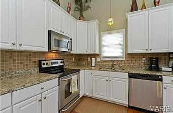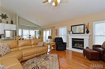 Immaculate, updated villa in the desirable St. Andrews community! This gorgeous home is loaded with upgrades, has tasteful neutral d?cor and shows like a model home. Features inc: Andersen double tilt windows, 9? ceilings, vaulted ceilings in the Entry/Great Rm/Kit/Brkfst Rm, direct vent fireplace, bay window in Brkfst Rm, brushed nickel door hardware, upgraded stainless steel appliances, 42? cabinets, Granite countertops, large center island w/raised brkfst bar, hardwood floors, luxury Master bath with separate tub/shower, screened in porch with open porch for grilling, steps to grade and much more. The oversized garage has an 18 X 8 insulated carriage style garage door, is fully drywalled, taped & painted. A monthly fee includes lawn/ landscape maint, snow removal, water for the irrigation system, some insurance and more. Desirable neighborhood with walking trails throughout. Easy access to Hwys 70, 370,94 & 364 as well as Lambert Int Airport. You will not be disappointed!
