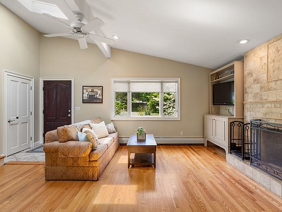 Welcome to this beautiful home set on over 2.5 acres of private, picturesque land with a fantastic flat backyard and stone patio—perfect for your BBQs, lawn games & all your outdoor entertaining. Inside, you’ll love the open floor plan w/vaulted ceilings and hdwd floors. The updated kitchen w/granite counters and SS appl., flows easily into the dining room and fireplaced living room. Upstairs, you will find 3 nice sized BRs & an updated bath, all with vaulted ceilings. The lower levels offer a family room with FP and a separate area w/built-in counters and sink – perfect for crafts or wet bar, a gorgeous 4-season sunroom, a huge mudroom & a beautifully updated bath. This home is full of smart details, w/built-ins in many rooms—think dressers and cabinets—for easy organization. The property abuts conservation land, giving you privacy and a serene, natural backdrop. With a new roof and thoughtful updates thru-out, this move-in ready home is full of charm, comfort & everyday convenience.