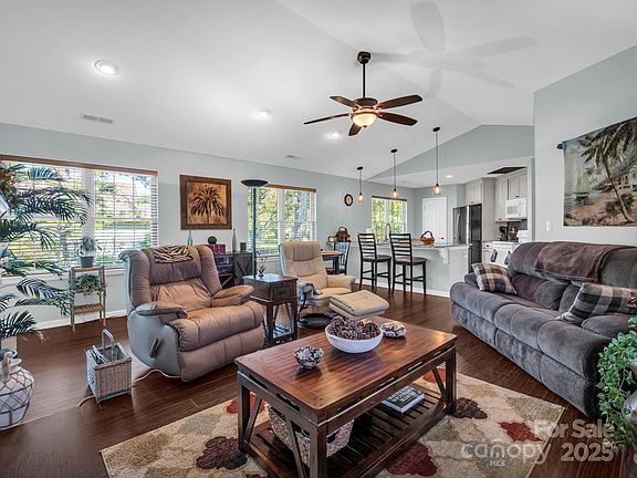 This beautifully maintained, move-in ready, single-level home is filled with natural light and designed with a split-bedroom floor plan. Engineered hardwood floors flow throughout the open layout, highlighted by a cozy gas fireplace. The kitchen offers abundant cabinetry, granite counters, and a bright breakfast nook. The primary suite provides a private retreat with a walk-in closet and spacious ensuite featuring a newly updated walk-in shower, while guests will enjoy their own wing with two bedrooms and a shared full bath. Step outside to an expansive screened-in porch with a hot tub and plenty of space for entertaining or relaxing while overlooking the tranquil backyard. Situated just steps from The Park at Flat Rock’s walking and trail system, this home sits on a desirable level lot with a 2-car garage. Convenient location places you minutes from grocery stores, restaurants, and downtown Hendersonville.