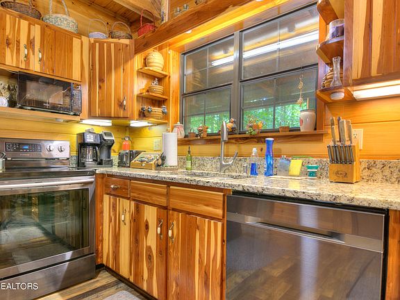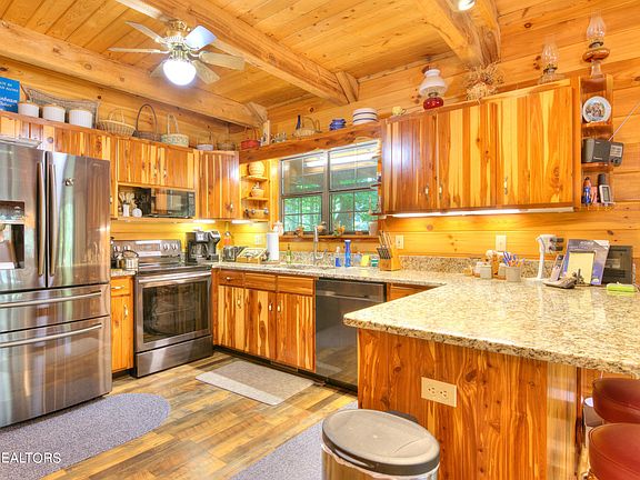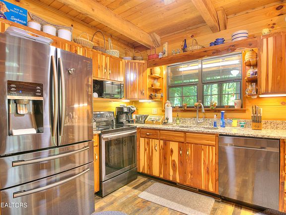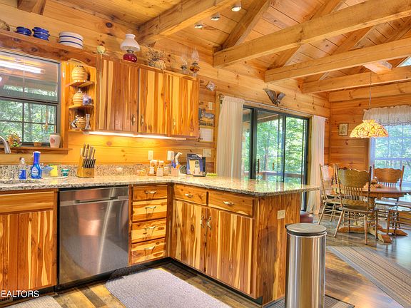 Dreams do come true! This well-maintained log-sided cabin is nestled in the woods of Historic Coker Creek, offering a peaceful escape and the perfect opportunity to connect with nature. Enjoy your morning coffee listening to the gurgling of the nearby creek and take in the beauty of your surroundings. Situated on a private and wooded 0.93 acre lot, this charming cabin boasts: 2 bedrooms, 2 and a half baths, a freestanding wood burning fireplace, a partially finished basement, New HVAC and a 1 car garage. All furnishings will remain with the house. Imagine waking up to the sounds of nature and spending your evenings cozying up by the fireplace. This is the perfect place to relax, unwind, and create lasting memories. Don't miss out on this opportunity to own a piece of paradise! Buyer to verify all information.