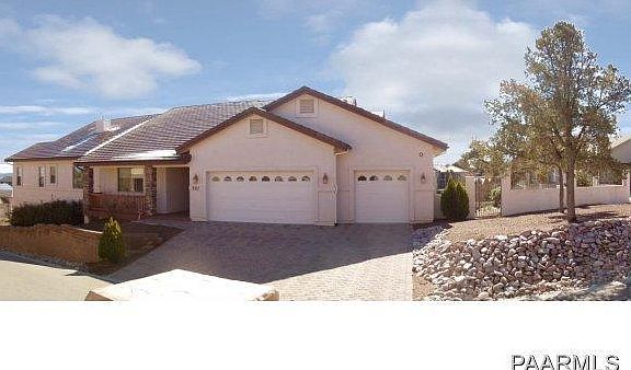 Bright, airy and ready to move into, this single level home offers high level amenities. Distant views of SF Peaks, Mingus Mountain and Granite Dells. Open floor plan, chef's kitchen w/granite counters, stainless Steel appliances, walk-in pantry and breakfast nook plus formal dining, great room w/corner fireplace and a spacious den that offers multiple possibilities. Master suite has 2 walk-in closets, dual vanities, jetted tub & walk-in dual head shower. Second master suite. Baths are beautifully appointed. Spacious covered trex deck, large level yard for toys, playground, etc. Other features include a security system, fire sprinklers, concrete tile roof, energy efficient, low maintenance. Pavestone driveway enters an oversized 3 car garage, NO HOA.