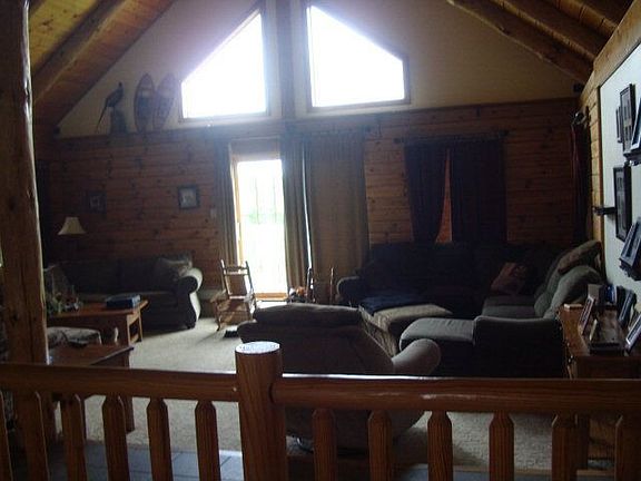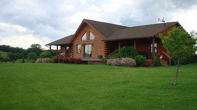 This a dream log home situated on 24+ rolling acres with views for miles. The modern open floor plan has room for everyone, amazing woodwork throughout, 3 bedrooms including the master bedroom on the 1st floor,the finished basement has a play room, a large office, a media room, a bar with granite countertops, a guest bedroom with living room plus an additioanl bathroom! A large 40x30 garage, an outdoor woodstove to say on energy costs, but also has an indoor furnace - this is a one of a kind home- A MUST SEE!