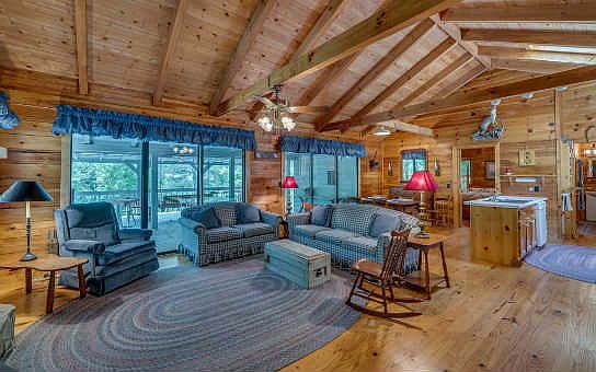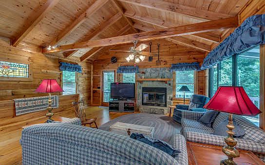 AN EXCEPTIONALLY BEAUTIFUL STRETCH OF THE CARTECAY RIVER - Head to the porch swing, have a seat & listen to the rapids. This log home has a great whitewater view & a lot filled with Rhododendron and hemlocks. Features include a lovely great room with wood burning fireplace, a large main level master suite, 3 additional bedrooms - all with their own sitting rooms, large closets, a laundry room on the main level & the terrace level, and a garage. Private location and no home can be built across the river. 05/29/14
