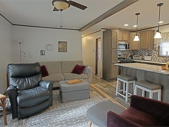 Easy living from this Sunset Lake mobile home in Hinesburg! This 2019 doublewide offers a sunny, open floor plan with modern laminate flooring, kitchen with upgraded stainless appliances and center island with seating, sliding glass door to a private back deck, and more! You'll find 2 bedrooms and 2 baths including a primary bedroom suite with large closet and private bath with soaking tub. Convenient laundry room/mudroom - newer washer and dryer stay. Plenty of storage inside and out with a large garden shed in the backyard. Relax on the back deck overlooking the woods or enjoy the lake views from the side porch. Beautiful landscaping and driveway for two cars round out the exterior. Sunset Lake Cooperative is a resident owned community in which owners take pride in their neighborhood. Everyone here enjoys access to Sunset Lake for fishing, kayaking, canoeing, and stand-up paddle boarding. The community is just minutes to hiking trails, schools, and downtown Hinesburg with an array of restaurants and cafes, plus enjoy easy access to Burlington and I-89.