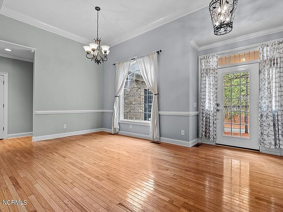 A highlight of this property is the Carolina room off the family room, providing a perfect spot for relaxation and taking in the surroundings. The custom kitchen is a chef's dream, featuring upgraded cabinets and solid surface countertops that enhance both functionality and aesthetics.