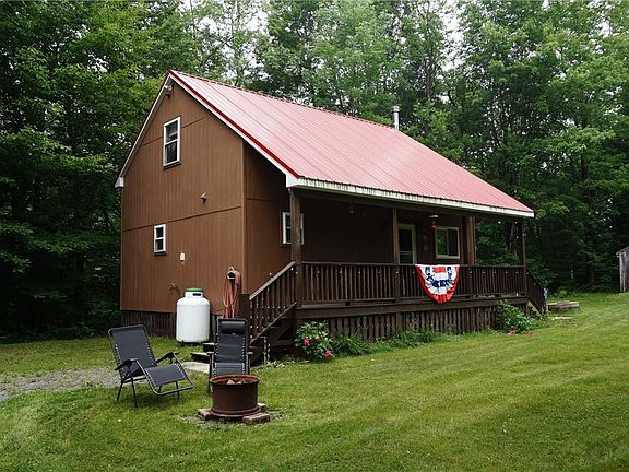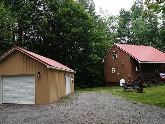 Step right into this cabin and enjoy all that Tug Hill has to offer. Cabin is being sold with most furnishings included. Offers year round access on a paved and plowed road with all the amenities - electric, well & septic. This 1.5 story cabin features living/kitchen/dining combo, first floor bedroom, laundry, full bath on the main level. Second floor is large loft that provides plenty of room for all the guests. Rinnai heater provides efficient heat plus pellet stove for supplemental. Set up to drain water easily so there are no worries of water issues when your not here. 16x36 garage with two overhead doors provides ideal storage for all the toys. Plus additional shed, great place for the yard gear. Large covered porch offers the perfect spot to enjoy the outdoors in any season. There is access to both the ATV & snowmobile trail systems, no need to trailer. Just minutes from the Salmon River Reservoir for phenomenal fishing, boating and swimming. There are also several public fishing access points in the area. This cabin will provide year round enjoyment!