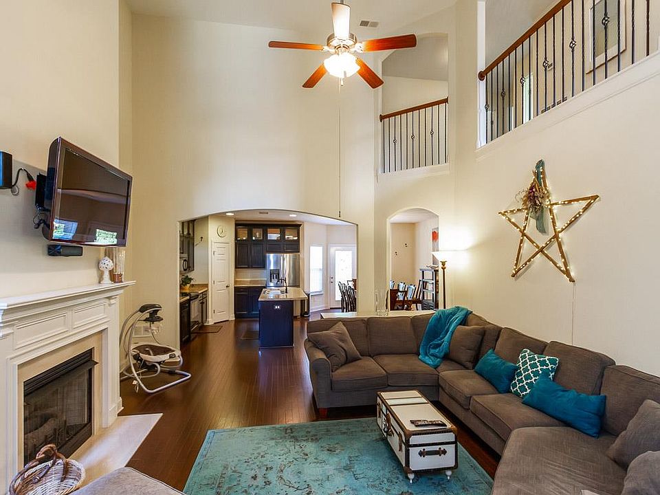 Elegant and comfortable all in one. Foyer opens into Large Living Room w/ open ceilings & gas fireplace. Designer Kitchen w/ dark rich cabinets & glass door details, pantry, island, & spacious dining rm. Gorgeous wood floors. Private Master Bedroom on first level w/ 9 ft ceilings, en-suite including whirlpool gorgeous tile work, double sinks & walk in closet is a must see. Second floor includes 3 bedrooms, large rec room and separate sitting area insures everyone has their space. Home warranty.