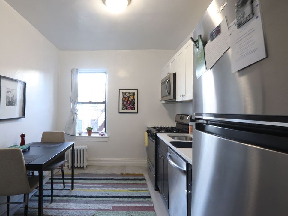 By appointment only open house. All who do not make appointment will not have access You are located in an elevator building. This unit highlights a new kitchen and bath. The foyer space separates all rooms. The kitchen is a-line style black and white. The kitchen is well equipped with a stainless steel fridge, stove, dishwasher, and microwave. The quartz countertop is new. The bathroom has an accent strip and two styles of tiles. The modern ,sleek look of this unit makes you forget it is a pre-war building. But the room sizes do not. The large living room is well light in the day and in the night with sconce lighting. The bedroom can hold a king-sized bedroom set. This unit is located by many restaurants, coffee shops, bars, and owls head park! You have a short distance to the R, N, ferry, and X-press buses.
