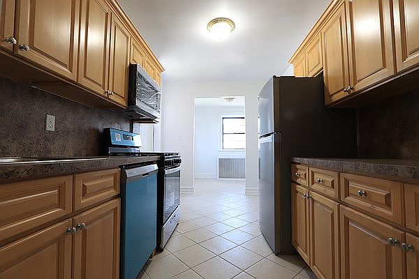This oversized two-bedroom apartment boasts stunning light and views throughout. Located on the top floor of an elevator building, the apartment is truly impressive. Ample closet space can be found throughout the residence, and its well-designed layout is greatly appreciated. The apartment features freshly redone floors, skim-coated walls, and new appliances. The living room, situated far from the bedrooms, faces both the shore and the city. Adjacent to the living room is a large foyer, from which all other rooms branch off. The foyer offers plenty of space for a dining area or home office. The galley-style, double-entrance kitchen comes well-equipped with a stainless steel fridge, stove, dishwasher, and microwaveall of which are new. If the foyer doesn't suit your dining needs, the kitchen also features a dining alcove. Both bedrooms can accommodate a king-sized bedroom set and are not connected by a shared wall. The bathroom has been updated and includes a new bathtub. The building is conveniently located near the R train, NYC Bay Ridge ferry stop, restaurants, cafes, and the beautiful Owl Head Park. Some other points of interest in close proximity may be: NYC Langoon, Brooklyn Army Terminal, Shore Road Park, and Citi Bikes are nearby if need. Although the building does not have laundry facilities, there is a laundromat next door.