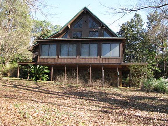 The lakeside of the property is cleared and windows from the 12' x 36' Sun Porch of this A-frame home offer beautiful views of the lake and Pataula Creek. Home is situated on a landscaped, flat lot and is being sold with appliances and most of the furniture included! The open floor plan features a Living / Dining / Kitchen combination with a wood-burning stack-stone fireplace; and a ceiling open to the upstairs with plenty of windows across the A-frame allows natural light to flood the home! Property amenities include 16' x 24' boat dock with an electric lift, 16' x 32' metal shop building, 12' x 18' metal carport, and storage building. Property has its own deep well and septic; in addition, county water is available at the road. Please call for more details!