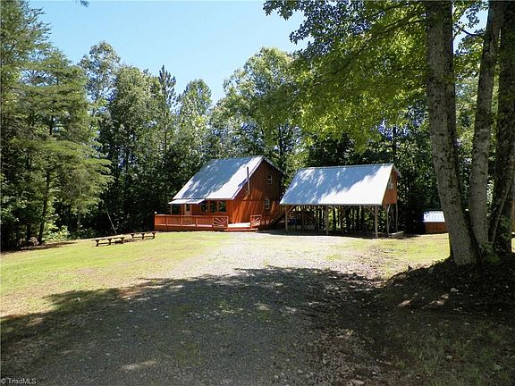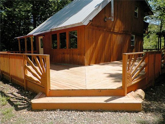Privacy, privacy, privacy! Unique 2 bedroom home on 6+ acres in Davie County. Cozy cabin feel with wood stove in living room. Enjoy your morning coffee on the balcony off the master bedroom overlooking the pond. Home has energy efficient ductless HVAC system. Bonus room over carport with ½ bath. Enjoy the tranquil beauty of nature from the huge wrap around deck!