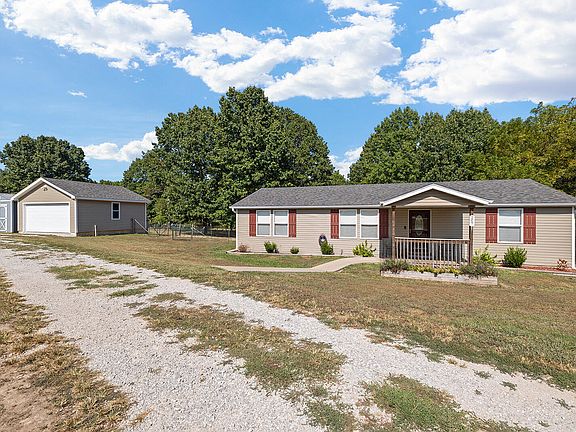 Peaceful country living just minutes from Nixa! This spacious Highlandville home sits on 2 fully fenced acres and features oversized rooms, a huge master bath, and a long list of recent updates: roof, gutters, and siding (2025), HVAC (2023), hot water heater (3 yrs), and more. The kitchen offers a backsplash and pantry, while bathroom includes stylish shiplap accents. All appliances stay (refrigerator negotiable).The land has been cleared, fully fenced, and extends 2 ft beyond the back privacy fence, ideal for animals or lots of gardening. The oversized insulated garage/shop with heat, air, and a Nest thermostat is perfect for projects, hobbies, or storage year-round.currently has a kennel/ grooming business. There are two additional sheds on the property that stay as well. Septic was pumped in 2024, laterals run behind garage. The home is connected to a shared well with low quarterly costs and maintenance. Located on a private road with small-town schools, and a Home School friendly neighborhood. Financing options available (FHA, VA, USDA). property combines the quiet charm of country living with the convenience of being close to town. Fresh price improvement--ready for one lucky buyer to make it theirs!