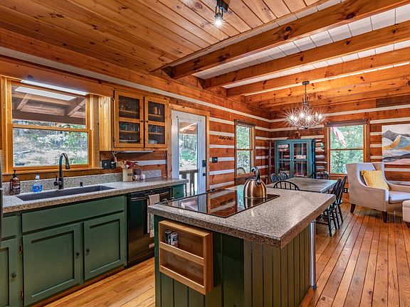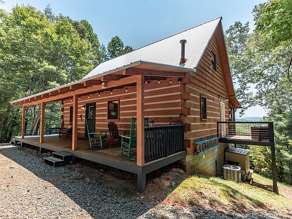 Welcome home to your picturebook cabin w/year round mountain views! Set at the end of a lane, this chink-style log cabin offers a cozy open floor plan LR/DR/kitchen w/ T&G walls/ceilings, HW floors, exposed beams, stone FP, granite c-tops, island w/ range, screened deck & covered deck access. The main floor primary BR has a private deck & sep BA w/ shower/tub, porcelain sink w/ waterfall faucet, & decorative tile floor. Follow the handmade open staircase w/ twig railings to the vaulted open loft space/bonus area, vaulted BR, & half bath. The fully-finished basement includes a bonus room w/ deck access, loads of storage, & a BR w/ tub/shower en suite. Special features include a wraparound deck, screened upper deck, hot tub, fire pit, & long-range mtn views. Private not isolated location close to Aska Adventure Area, 20 min SE of DT Blue Ridge. Well-built/maintained cabin w/ loads of charm.