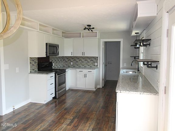 Three bedroom log cabin style home recently remodeled with new heat pump, flooring, baths with new vanities and shower stalls and kitchen with new appliances. Home offers heated and cooled bonus room above garage, large backyard and a large two car garage. Come enjoy a country setting feel in an area close to Jacksonville and Swansboro. Home is also For Rent whichever comes first.