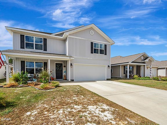 Welcome to this beautifully designed 5-bedroom, 3-bathroom home, perfectly situated in a family-friendly community just 5 minutes from Tyndall Air Force Base. Spanning 2,593 square feet, this two-story residence offers spacious living and modern conveniences.