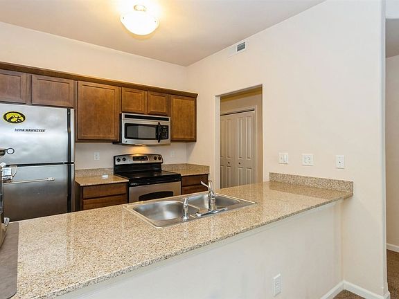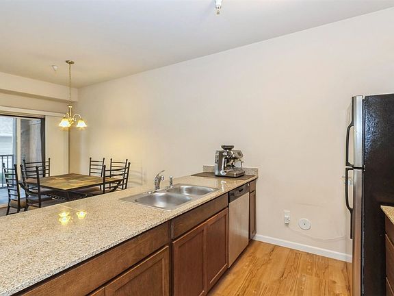 Great first floor 2 bed/2 bath condo with great natural light & open floor plan! Kitchen with granite countertops, stainless steel appliances, and breakfast bar. Dining area with sliding door out to your private screen porch. Cozy living room w/ corner gas fireplace. Primary bedroom with ensuite bathroom. Laundry room in unit. Detached 2-car garage. Short walk to the bus stop, and close to parks & walking trails! Owner occupy only - no rentals allowed.