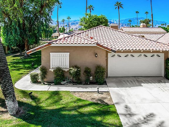 Welcome to this spacious 3000plan consisting of approximately 2055 square feet. As you step inside, you'll be greeted by an abundance of natural light that streams in through the large windows, showcasing the beauty of the golf course and San Jacinto mountain range. The open-concept design seamlessly connects the living, dining, and kitchen areas, creating a perfect space for entertaining and everyday living. Expansive West facing patio that is tiled and ready for enjoyment . The large living room combines vaulted ceilings, a wetbar, fireplace, and gorgeous views. Each bedroom is generously sized with plenty of natural light. This end unit condo features a newer dual zone AC system and includes some furnishings. Monterey Country Club offers 27 holes of golf, several tennis & pickleball courts, and a fitness center, along with a full clubhouse & restaurant for your recreation. There are 37 pools & spas throughout with one located just across the street from this condo. View this wonderful property today!