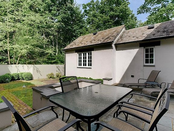 Homestead Preserve is a 4000 acre environmentally designed neighborhood surrounding The Omni Homestead resort with its tremendous list of amenities. The neighborhood is protected by its long boundary with The Nature Conservancy's 10,000 acre preserve above. The home is in the English Romantic style with old beams, stonework and slate roof. A galley kitchen has walnut counters and opens into a den. The expansive living and dining area has fireplaces at both ends and twin sets of French doors opening onto a private courtyard and small garden. Upstairs there are two additional bedrooms each with a private baths. There is storage space in an unfinished partial basement. The garage has a second level perfectly suited for a fourth bedroom or office space. Walk out the back door and you are quickly on a carriage trail through the woods and golf course to The Homestead.