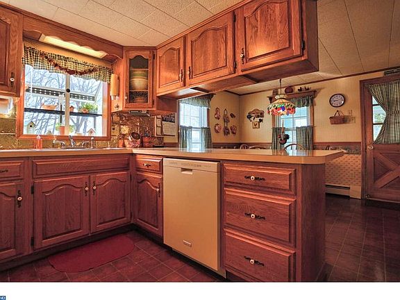 Beautiful Single home with 1.66 Acres, Mature Flower Beds, 2 Outside permanent benches to enjoy the peaceful surroundings, and a pond. Property is lined by Woods and has a long driveway that allows for extra parking. Outbuildings include a 31 x23 Entertainment Room with a Bar, Sink, Stove, Many Kitchen Cabinets, and a Large Walk-In Closet.On the other side of this building is a 2 Car Heated garage and Half bath. Second outbuilding is a 1.5 Car Garage with a Side storage Shed. Large flat BackYard with a basketball court to enjoy the outdoors. Enter through the front door into a Lovely Heated Sunroom with Harvey Custom Windows and a Ceiling Fan. As you go into the Eat In Kitchen you will find Solid Wood Cabinets, Chair Railing, and a Large counter for extra seating. The Formal Living Room is to your Left with Sliders that allow you access to the SunRoom. Master Bedroom/ Suite is on the Main Living Space that includes your Master Bath with a Walk-In Shower, Heated Jet Tub, Large Linen closet, and a Double Sink Vanity. This Space is Handicap Accessible with Safety Bars and a Laundry Room. Sliders Lead out to a the EXTRA LARGE Covered Deck and the Backyard. Upstairs you will find 2 Spacious Bedrooms. HOUSE is 2 1/2 Miles from I-78.