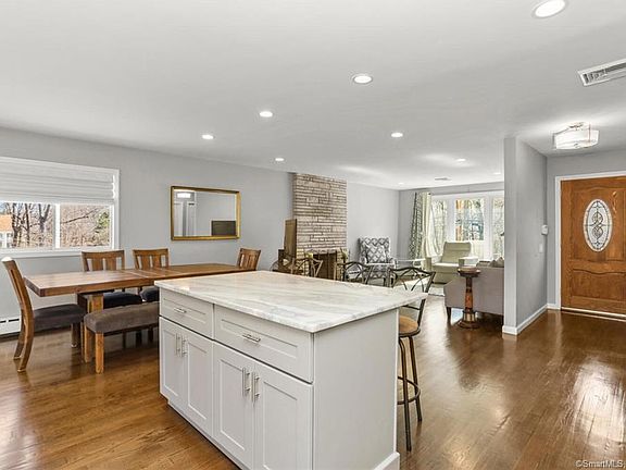 Conveniently located in the sought after Nichols section of town close to school's, parks, shopping, restaurants, & highways. This ranch offers the convenience of single level living & boast many updated & renovated features. The open floor plan has a new kitchen (2016) w/ white shaker cabinetry, quartz countertops, & tiled backsplashes. stainless appliances (2016) that include the gas oven range, large center island that is also a breakfast bar, & a large eating/dining area w/ the French doors that lead to the os rear deck (2017). Kitchen opens to the living room w/ a floor to ceiling marble wood-burning fp. Recessed lighting throughout & loads of newer thermopane windows (2012) make this home very cool & sun filled. This nicely painted interior (2016) also boast three generously sized bedrooms each w/ ample closet space, & the main level den can also substitute as the 4th bedroom or home office. The oak flooring is throughout this main level. The lower level offers 1200 sq ft of professionally finished living space w/ a large living/rec area, 2 addl bedrooms or office space, full bath w/ tile, pedestal sink, & tub/shower enclosure. There is also a fully equipped kitchenette making this space a perfect potential in law set up. The Weil-McLain Gold series furnace is 13 years old. The maintenance free vinyl siding & roof are only 10 years old. Two newly paved (2018) driveways allow for ample off street parking. The Bluestone walk way & professional landscaping are also newer.