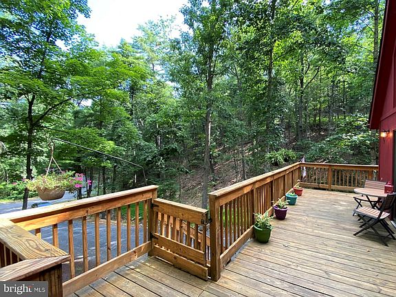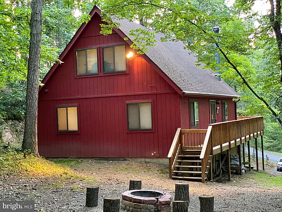 A peaceful chalet in Bryce Resort, surrounded by trees and just above Lake Laura, this 3 bedroom one bath charmer will be the perfect retreat from hectic city life. The house is in mint condition and move-in ready. It has a wall of glass window and sliding glass doors onto a large partial wrap-around deck and a fire-pit out back for cookouts and smores, along with an indoor wood-burning stove for a snug winter weekends. The soft gray corian countertops in the country kitchen are recent, as is the matching flooring in the Great Room. Kitchen cabinets, some appliances and lighting throughout the house have also been replaced. There are two main-floor bedrooms and a full bath, and a beautiful loft bedroom above with a window to the back. Wake to birdsong and dappled light in the tree canopy in complete privacy, enjoy Bryce's playful breezes and cross breezes and the sound of water from the seasonal stream adjacent to the house. Cross the street to the Stoney Creek easement path and you are minutes from Lake Laura down to the water's edge through sylvan beauty. Lake Laura offers swimming and water sports in its silky waters and fishing in the peace of a summer's evening. Come enjoy all four delightful seasons in Bryce Resort, which offers lake activities such as swimming, boating, (electric motor only), and great fishing. Depending on the season, there is golf, tennis, mountain biking, skiing and snowboarding, summer and winter tubing, and much more!